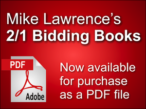 NEW! We have added five 30 to 40 page books providing Mike Lawrence's discussions on key 2/1 bidding topics. Click here to learn more »